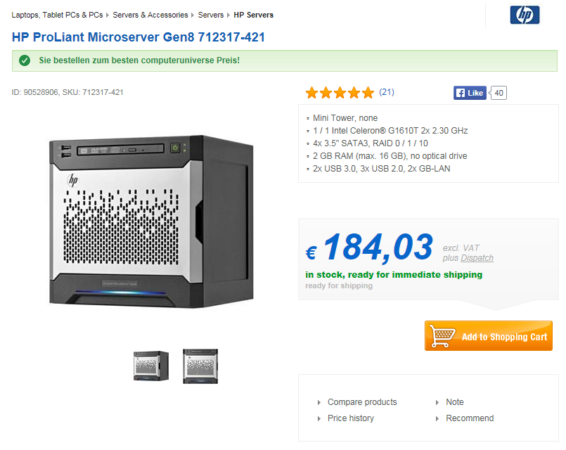 HP Microserver Gen8 서버 독일 해외 직구 히스토리입니다.