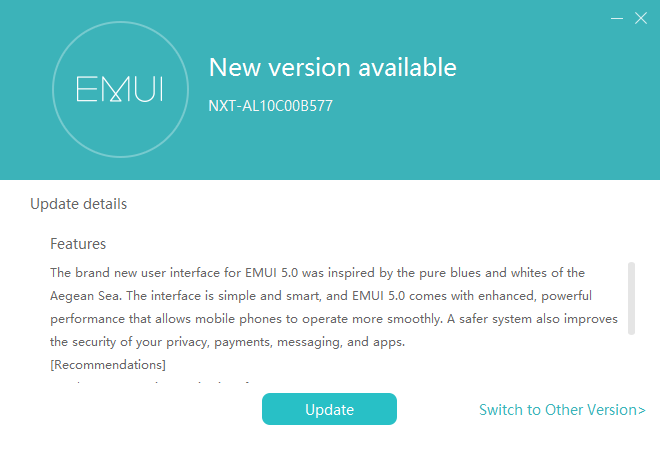 새로운 펌웨어 버전은 NXT-AL10C00B577입니다.