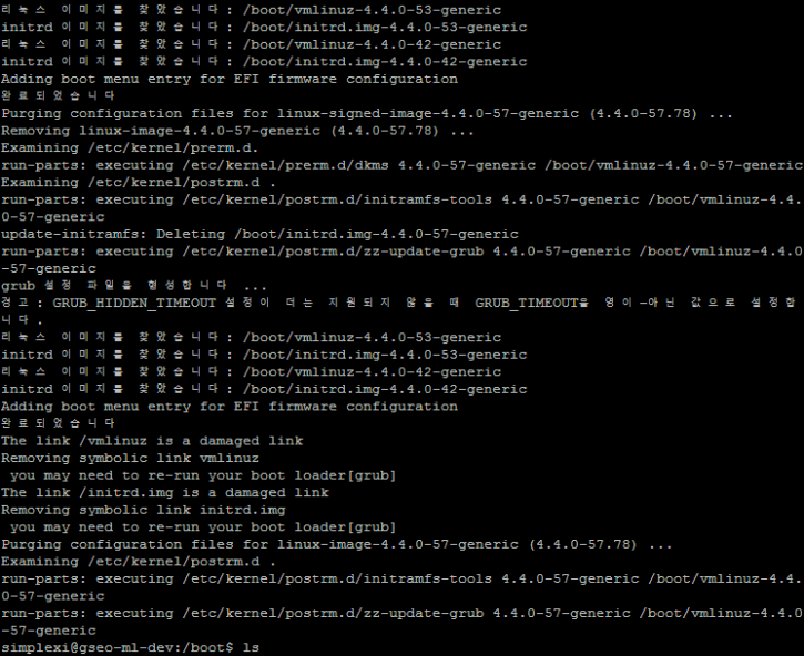 리눅스 boot 디렉토리 용량이 없을 때 처리 방법은 다음과 같이 처리하면 된다. 기존 커널을 삭제하면 된다.