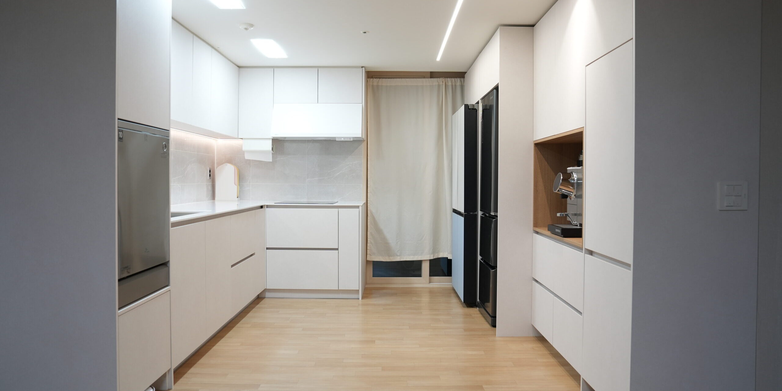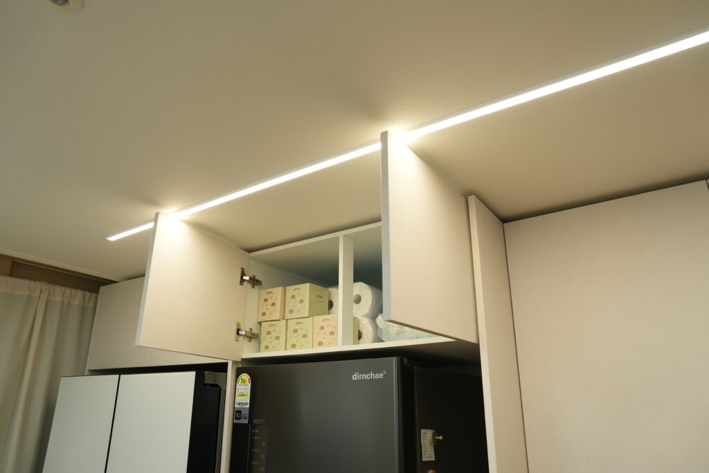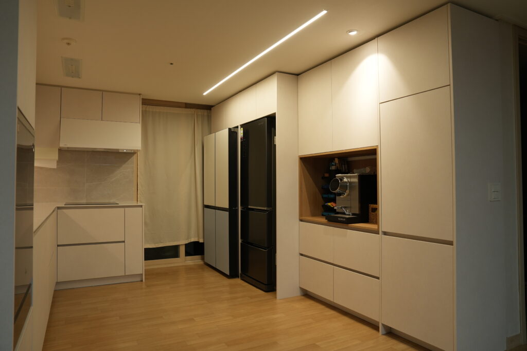34평 주방 인테리어 리모델링 – 4/4 조명 설치 초슬림 라인조명